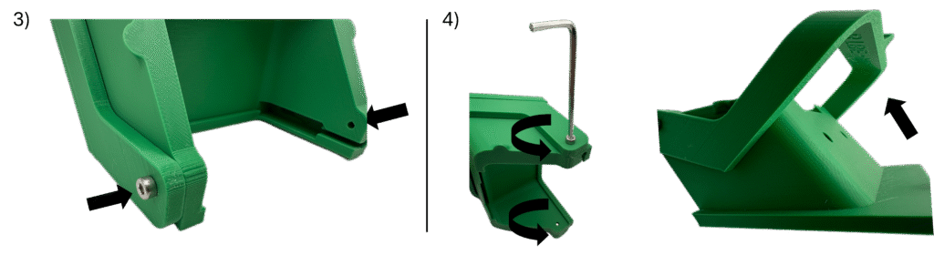 4. Rotate each Assembly Screw from step 3 a full rotation counterclockwise, unscrewing it just enough such that the Front Catch can freely rotate within its range of motion as shown.