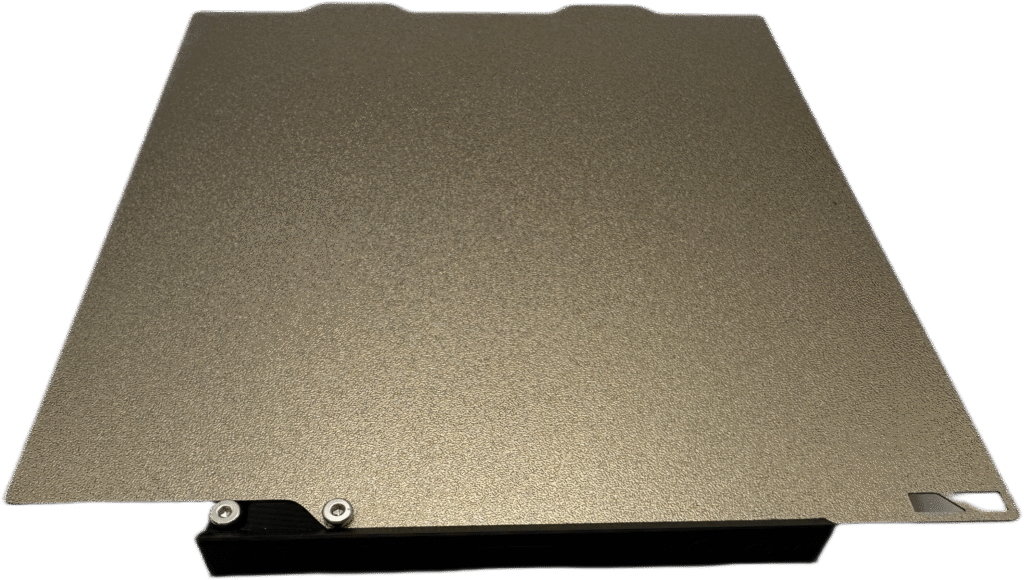 4. Insert the remaining Plate Screw through the circular hole in the Build Plate into the corresponding hole in the Plate Hook and slowly fully tighten. The remaining holes in the Plate Hook will not be used (and should not be visible) – but can be used in the future to utilize the other side of the Build Plate.